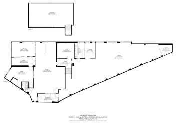 GF - Full height garage area with inspection pit, main workshop area, further storage rooms, kitchen, WC