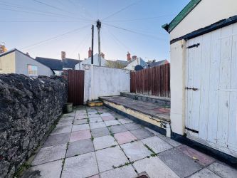 OS - Small forecourt to front. Enclosed low-maintenance rear courtyard garden laid mainly to patio with useful brick-built outbuilding/store and rear lane access (gate currently blocked but easily reinstated).
